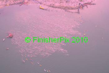 Aha! I thought, that makes sense. I settled into a good steady glide and started working on my drafting. I was feeling a lot more comfortable fighting for feet and lateral movement. Breathing was also a lot less labored than with the wetsuit. But I knew I was losing time to the decent swimmers.