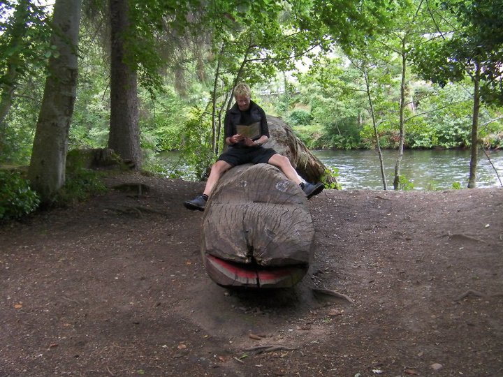 The rest of the walk had much better weather, and as the sun shone through while we climbed the hills, we had great views over Loch Oich and Loch Ness.  The forests were peaceful and we spotted all sorts of wildlife.  We were unsure whether or not it was the right decision to do the Great Glen Way straight after finishing the WHW.  But scenery was just as impressive and we also had a few quirky encounters that made it special.  On Day 2 and a few miles north of Laggan we came across a bizarre section of the woods.  Dean described it as ‘Blair Witch meets Walt Disney’, which summed it up nicely.  On Day 3 in the hills we walked past an area of stone messages, and the final Day (5) we wandered into a private cafe in a swamp, owned by a very friendly lady who bought the land to try to cultivate it.