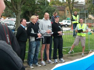 I didn’t know at the time that I was closing in on 2nd place. He was just 100-200m ahead of me on the exit from Knole Park and beat me by 16secs. Neil had won Crystal Palace Triathlon earlier in the year so is on good form. Mark Whittaker had an awesome race, finishing in another 1:19 time. Apparently he’d also swum 2 lengths too many, and flipped over his bike on the mount-line! He deserved the win.