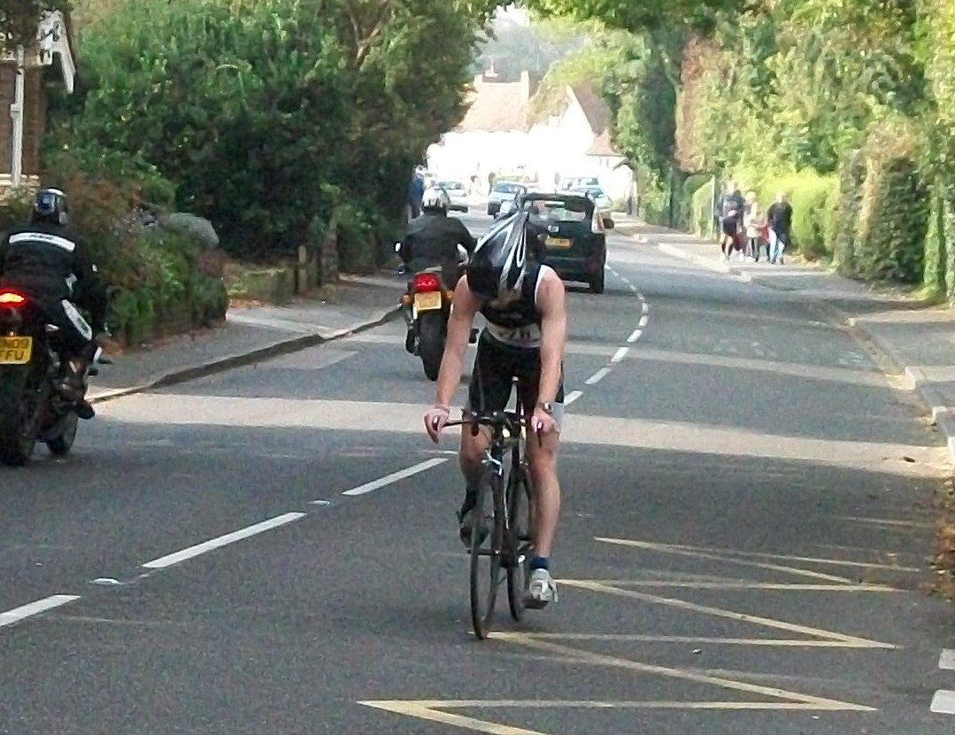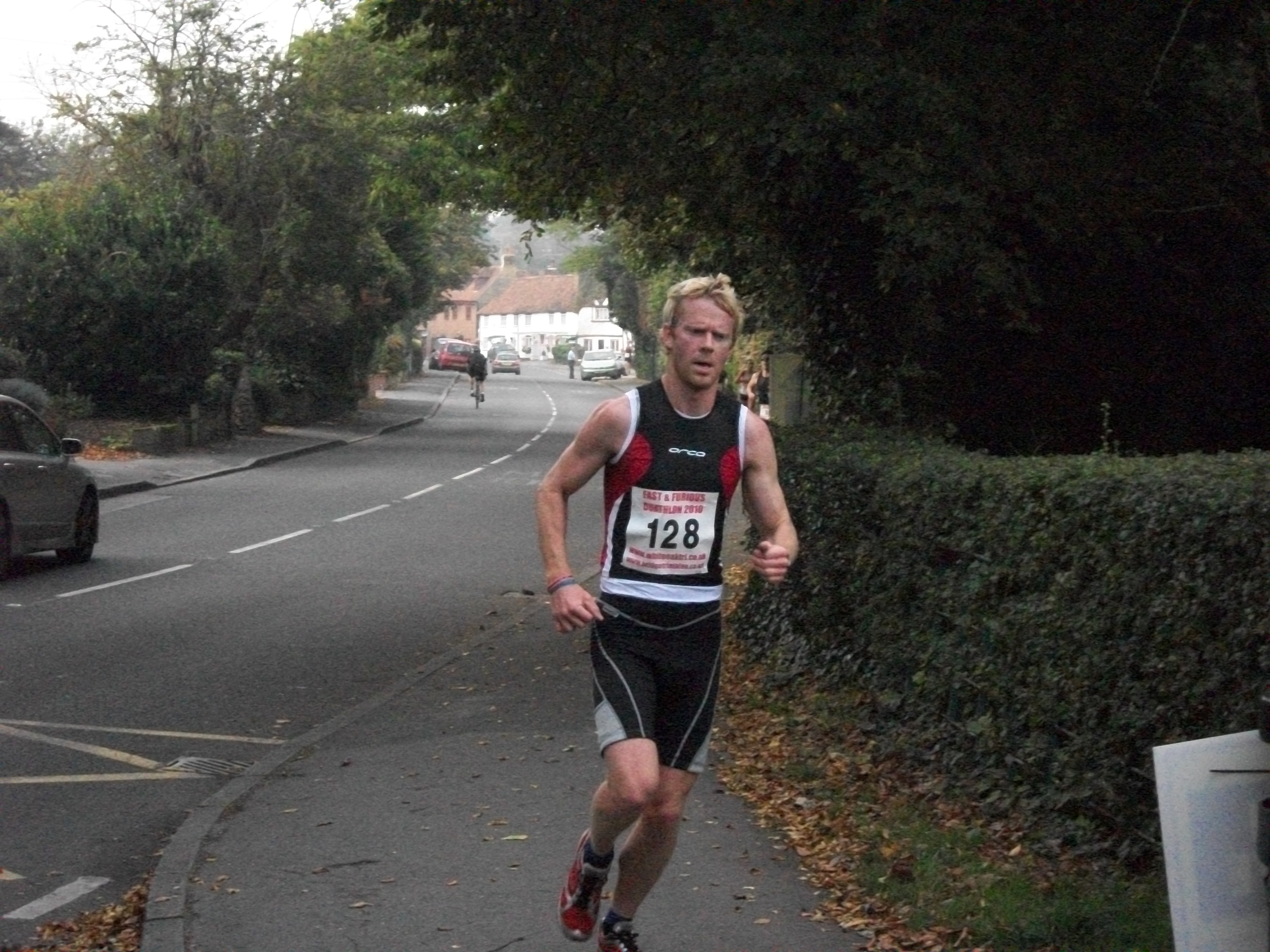 The race was broken up into three waves starts. The faster athletes were considered to be in the final wave but there were one or two quick times from the first couple of waves, which made the medal ceremony a little more interesting. I did a little warm-up, before lining up with Stannard and a few others for the start. The race involves a 5km run starting with a small lap of the school field on run1 and finishing with the lap on run2. The rest involves an undulating run around the back of Eynsford. The 22km bike course goes to Sevenoaks and back.