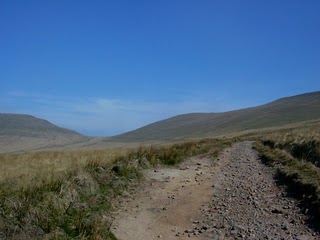 At the bottom and SW side of Tor-y-foel the course meets a road/track on the Beacons Way where a few marshals were waiting to take race numbers. A further 1 mile along the road was checkpoint1 and the first opportunity to take water. Of course I could run straight past on this occasion but I asked what the gap was between me and the leader and was told about 3-4 minutes. I was surprised at the time he’d built up already. I know I paused a couple of times in the mist, but he’d obviously made an enormous amount of time running down the other side of the hill.