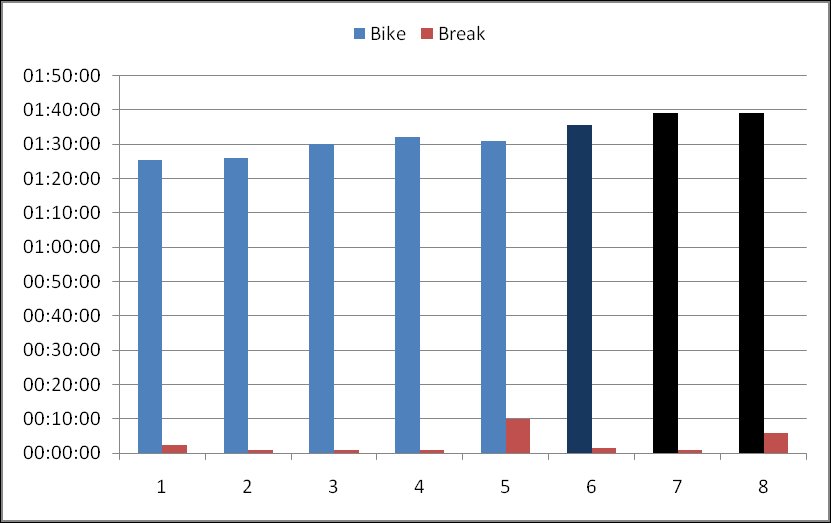 Once back on the sand I put a pair of running shoes on, and sprinted up the hill, through the shower and on to the changing tent (transition 1). I felt awsome. The swim had loosened me up and got the blood flowing. Whatever happened during the lead-in to the race, I felt like a new man. PT and RMS were both in the changing tent, sorting themselves out for the bike.  I had my race head on and tried to speed along. I asked the nearest marshal to pour a bottle of water down my shorts to remove excess sea water. It turned out to to be the race organisers wife, but I’m glad she found it amusing! I then dried myself down and applied vaseline, followed by sun cream. Next came the cycle shorts, race belt, sunglasses and cycle shoes. PT was the first to leave the tent, so I ran to my bike and followed him out. I wanted to keep him within my sights for the first lap of the bike at least. RMS came out right behind me. The swim splits were all taken on a timing matt before transition (near the shower). It looks like I made up 3mins in transition. The three of us all jumped on our bikes around the 2hr30 mark.