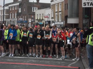 I raced in the 16mile Kingston Breakfast Run on 27 March.  Just like the 10mile race preceding it I wasn’t quite 100% but I put everything into it, holding an optimal and sustained effort across the distance.  If I could average a <=6mins/mile pace for the whole 16miles (<=1hr36 overall) then I would still be on course for my first main target of the year – a <2hr45 Marathon at London.  I set these first two race targets based on the Macmillan Calculator (-1min to be safe) and a little research on The Power of 10 of those that had done the 16m event and London Marathon in previous years.