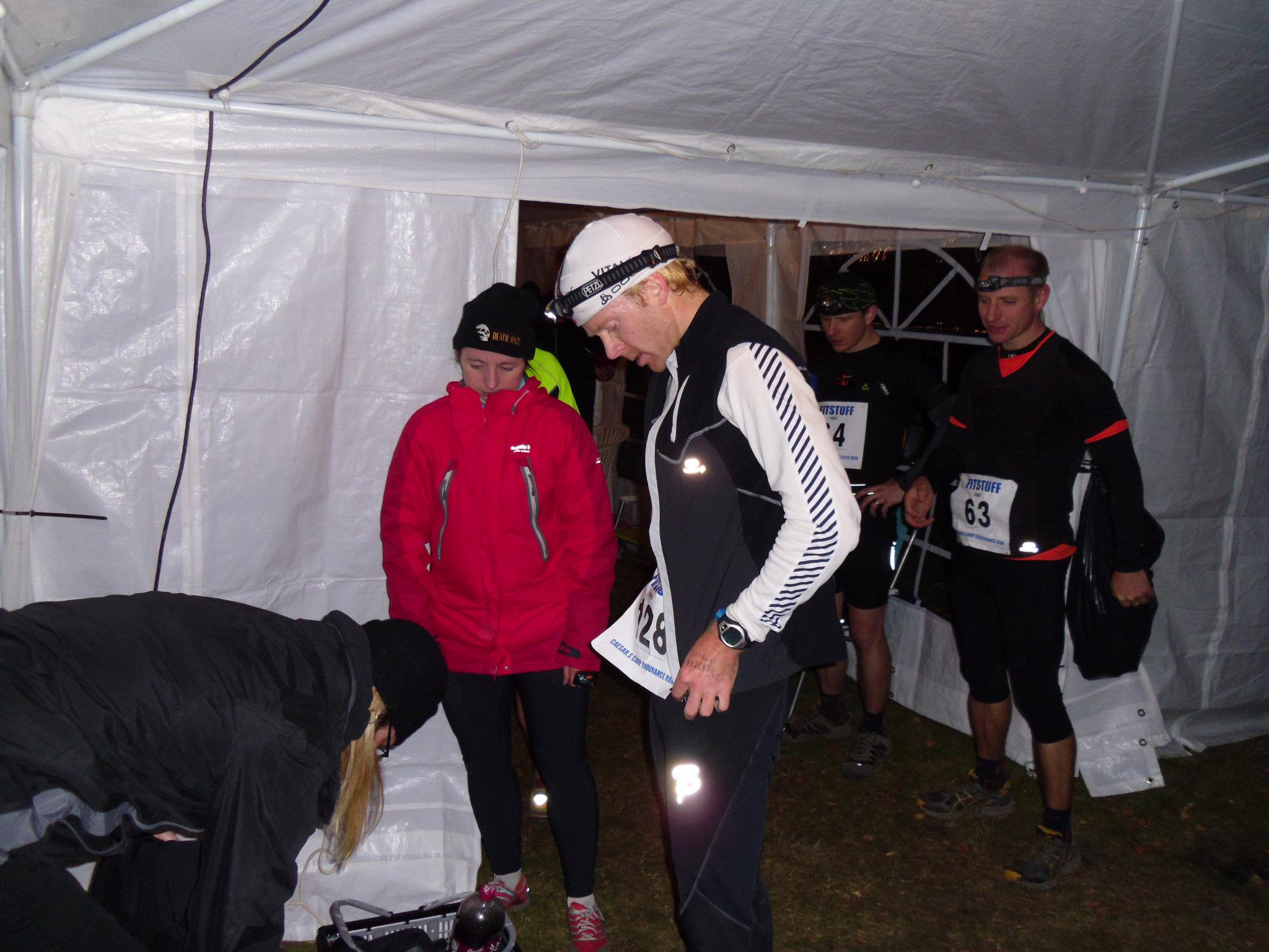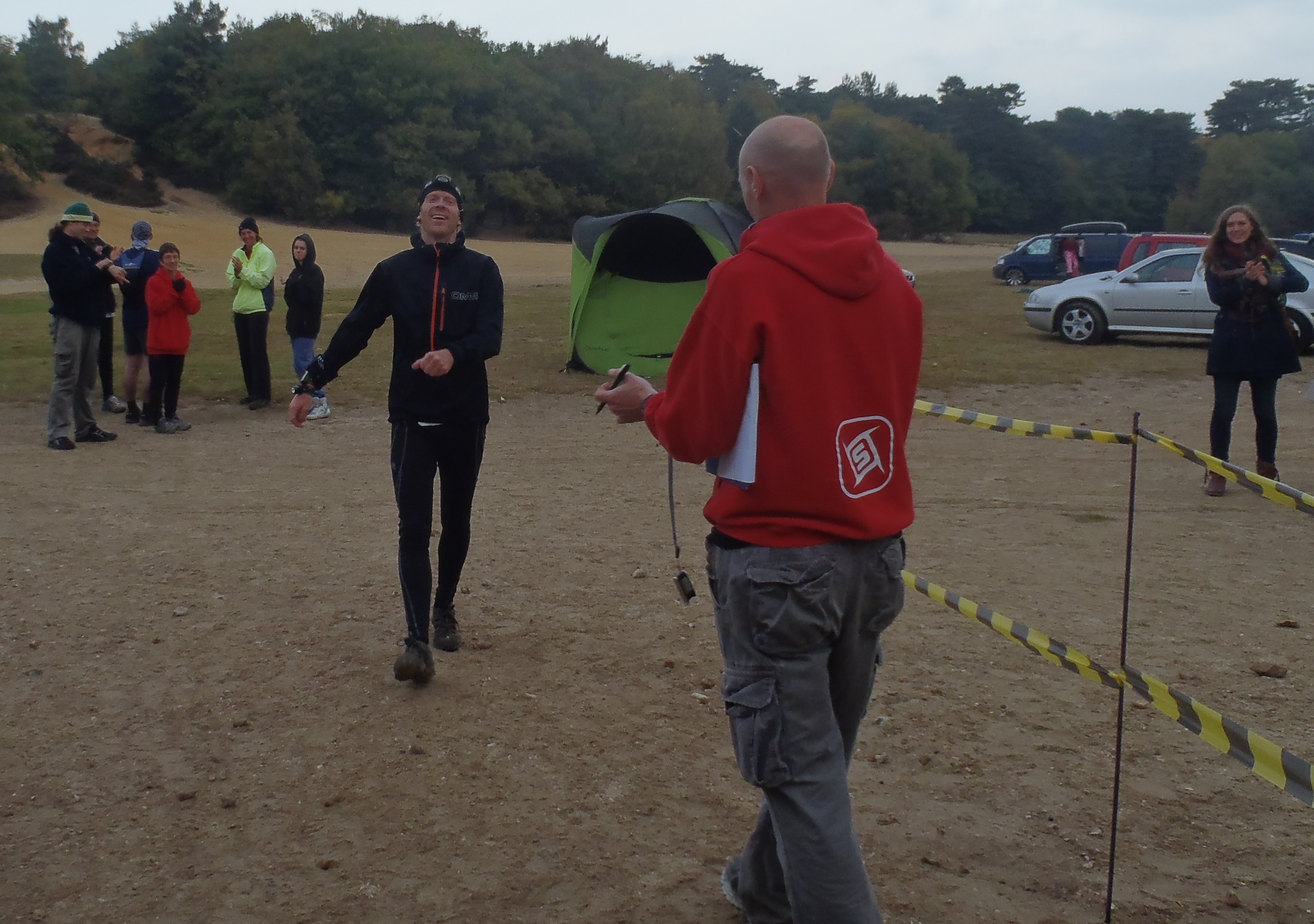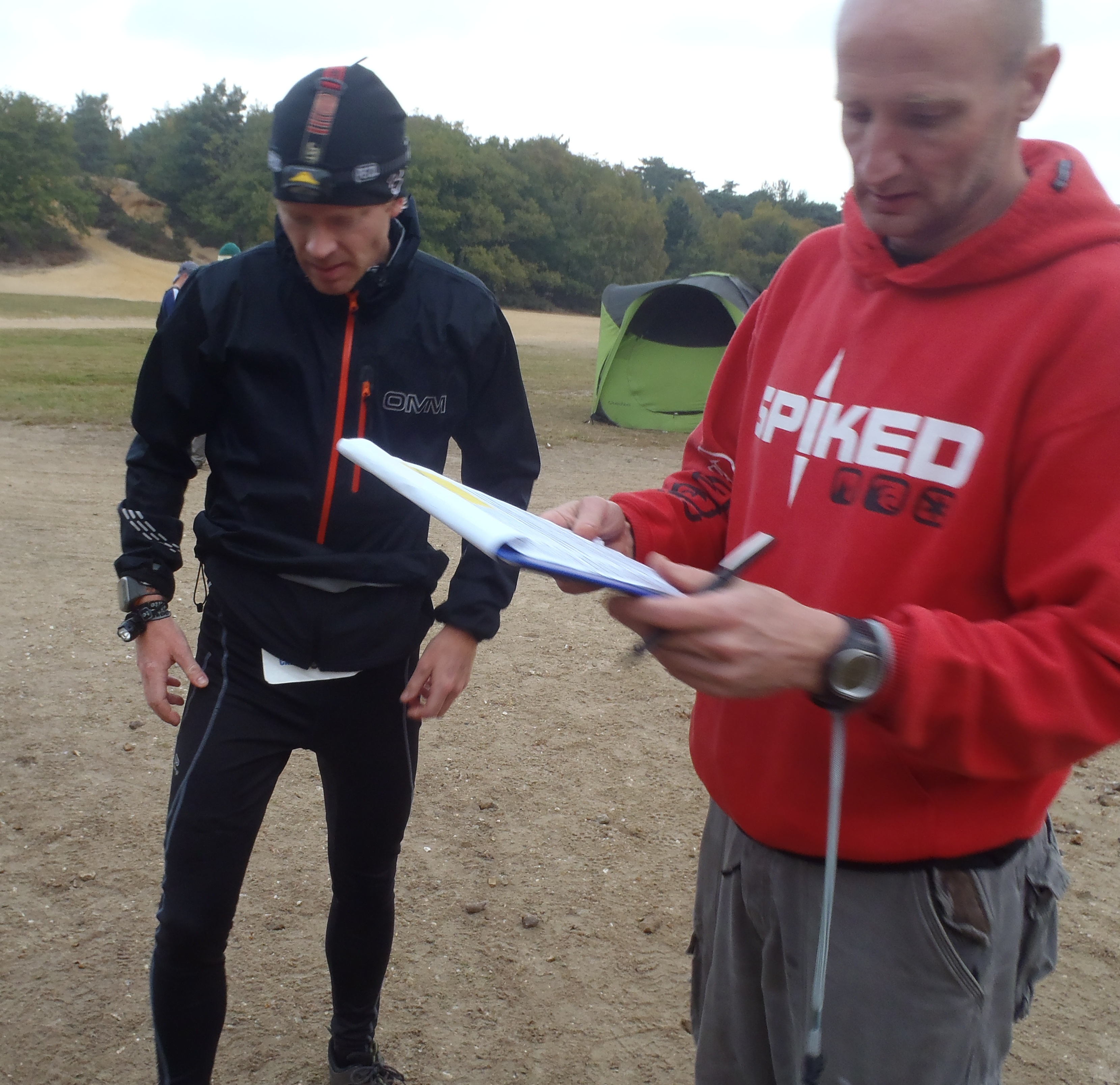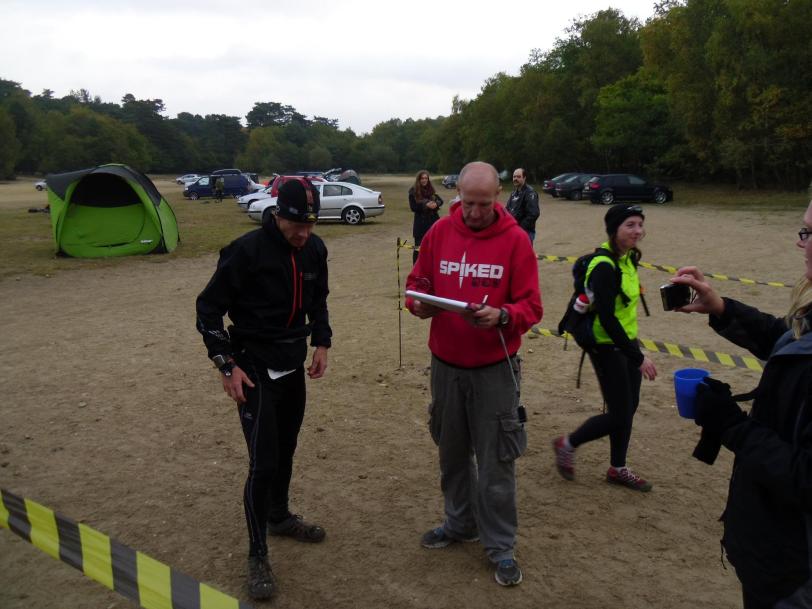 At 10am on Sat 22 Oct we drove down to Caesar’s Camp near Aldershot and while the crew were setting up the tent I met Scott Garrett and a few other runners before the pre-race brief from the organiser Henk.  Henk is quite a character and I have to say his brief was very colourful and entertaining, I loved it.