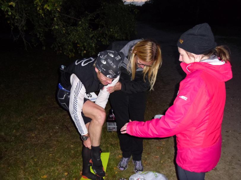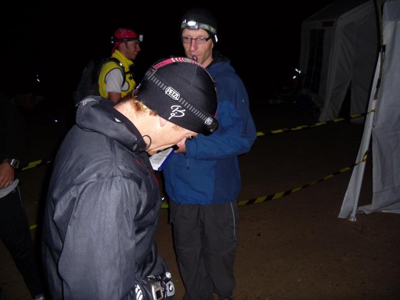 Clothing (top to bottom): Odlo ski hat(2), 7oaks buff hat, Petzl tikka+ headlamp, Helly Hansen tops, Bjorn Dhaelie gillet, Quechua gillet, Nike fleece, OMM smock, Garmin Forerunner 310XT (thanks Ed), Cyberlite headlamp (back-up), Bjorn Dhaelie leggings, Quechua leggings, 2XU compression shorts and calf guards, Nike compression socks, 1000mile stability socks,  Inov8 roclite 295s.