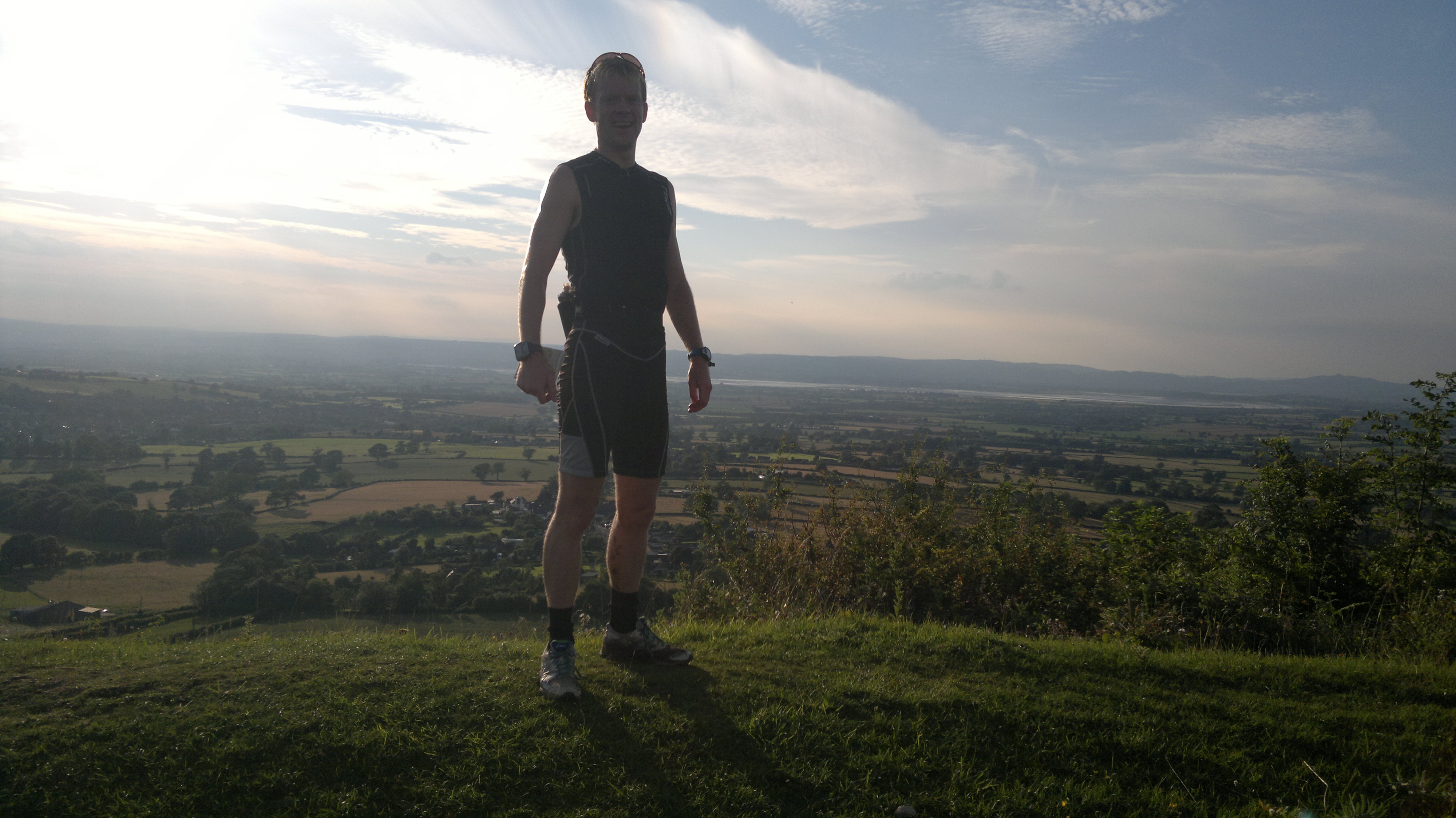 It was 4pm when we reached the Dog Inn and getting quite hot. We’d been blessed with a clear day, which was great for the views but not so good when running up and down exposed countryside. At this and the following aid stop in Hawksebury, I took a moment to pour water over my body as well as over-hydrating on electrolytes. I knew I’d need to top-up on the 750ml I was drinking through the 1hr30 sections. I also decided it was time to move to a more cushioned off-road shoe, so I put on my Mizuno Wave Ascend.