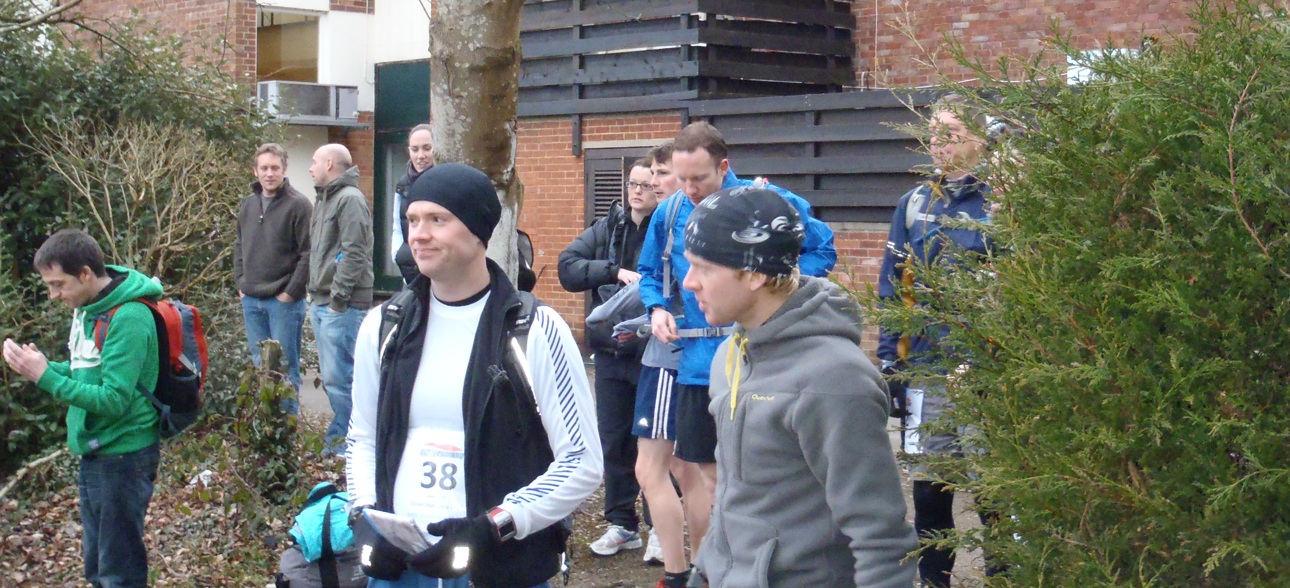 From Dundry I was able to pick the pace up again, straight through to CP1 (Checkpoint 1) at the hall in Morton Malreward where Steve Worallo (race organiser) and another marshal were laying out a selection of foods. I was shocked to see my first split was 1hr14min (7mins quicker than last year). Time lost on navigational was comparable, so I was either running far too quick, or was on good form. I must admit I was close to my limit but I felt pretty good. I scanned the small-cut sandwiches, malt loaf, flap-jacks, chocolates, sweets, and munched on a few items while I refilled my bottle and took a few swigs from the red bull. I wanted to keep weight to a minimum during this race, but still had a decent amount of gels in my pocket to consume between CPs.