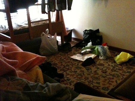Since I was a child I have experienced the occasional light hallucination at night when I have a fever.  I was both full of food and had a slight fever (the body’s reaction to the prolonged stress) when I went to bed.  At one point in the night I awoke to see a dark figure looming right over my bed.  I followed this figure with my eyes as it very slowly glided along the side of my bed to position itself next to the toilet door.  For a minute my heart was pumping as I tried to rationalise what I’d seen.  It finally dawned on me that the current shape was in fact my marmot rain-jacket hanging to dry off the door.  Somehow my brain had super-imposed that image beside my bed, before it moved back to its original position.  I had another ‘experience’ the following night at Brompton Camping Barn, but it wasn’t as strong and was soon forgotten.