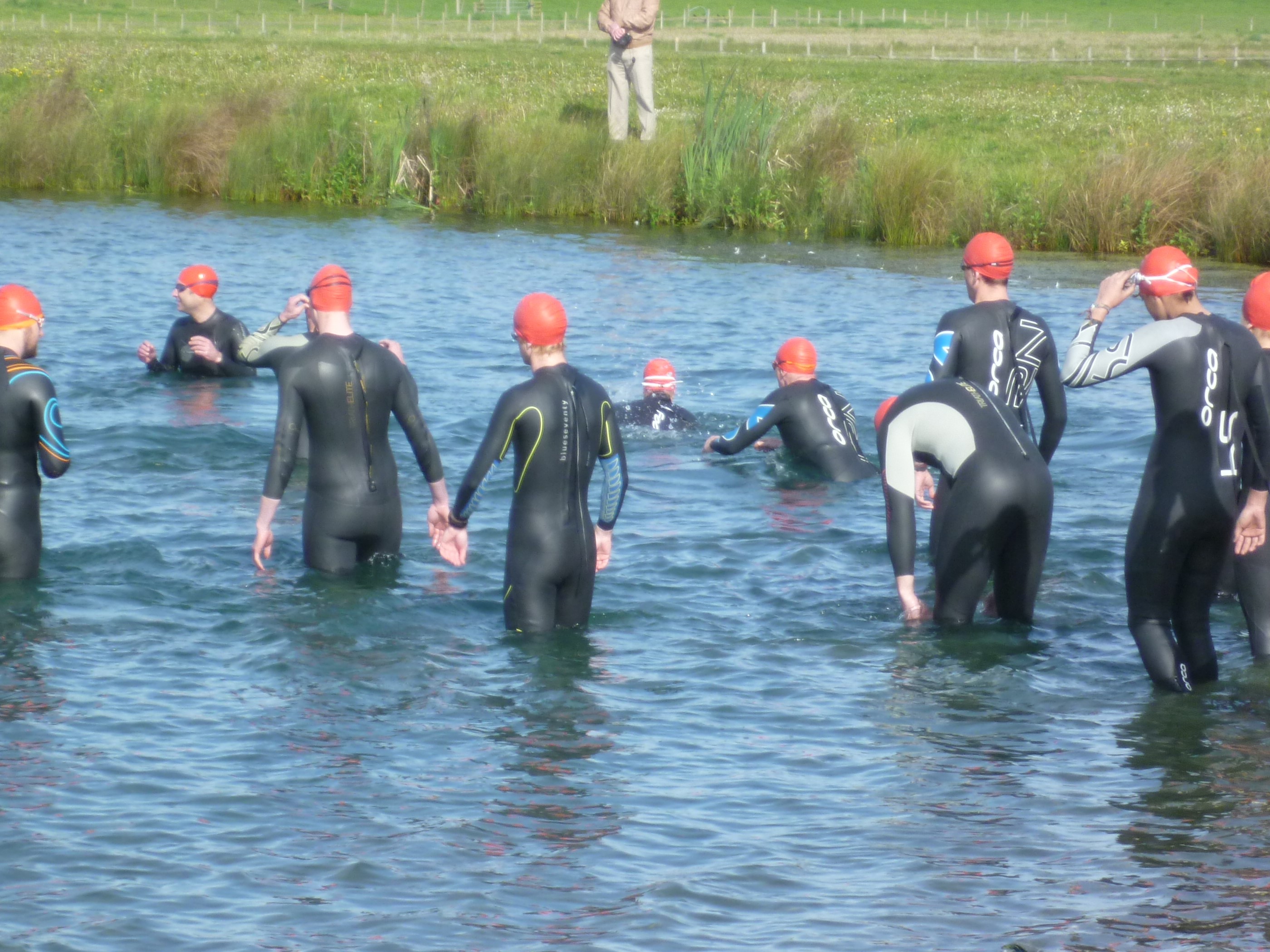 Shortly before 9am on a cool Sunday morning we all waded into the sludge of Top Barn Lake. The water was cold as it seeped through the wetsuit, but not as much as I was expecting. A few minutes splashing to loosen up the arms and I started to get ‘brain freeze’, but this soon passed and I was looking forward to getting started.