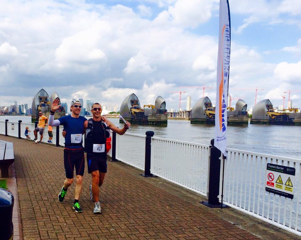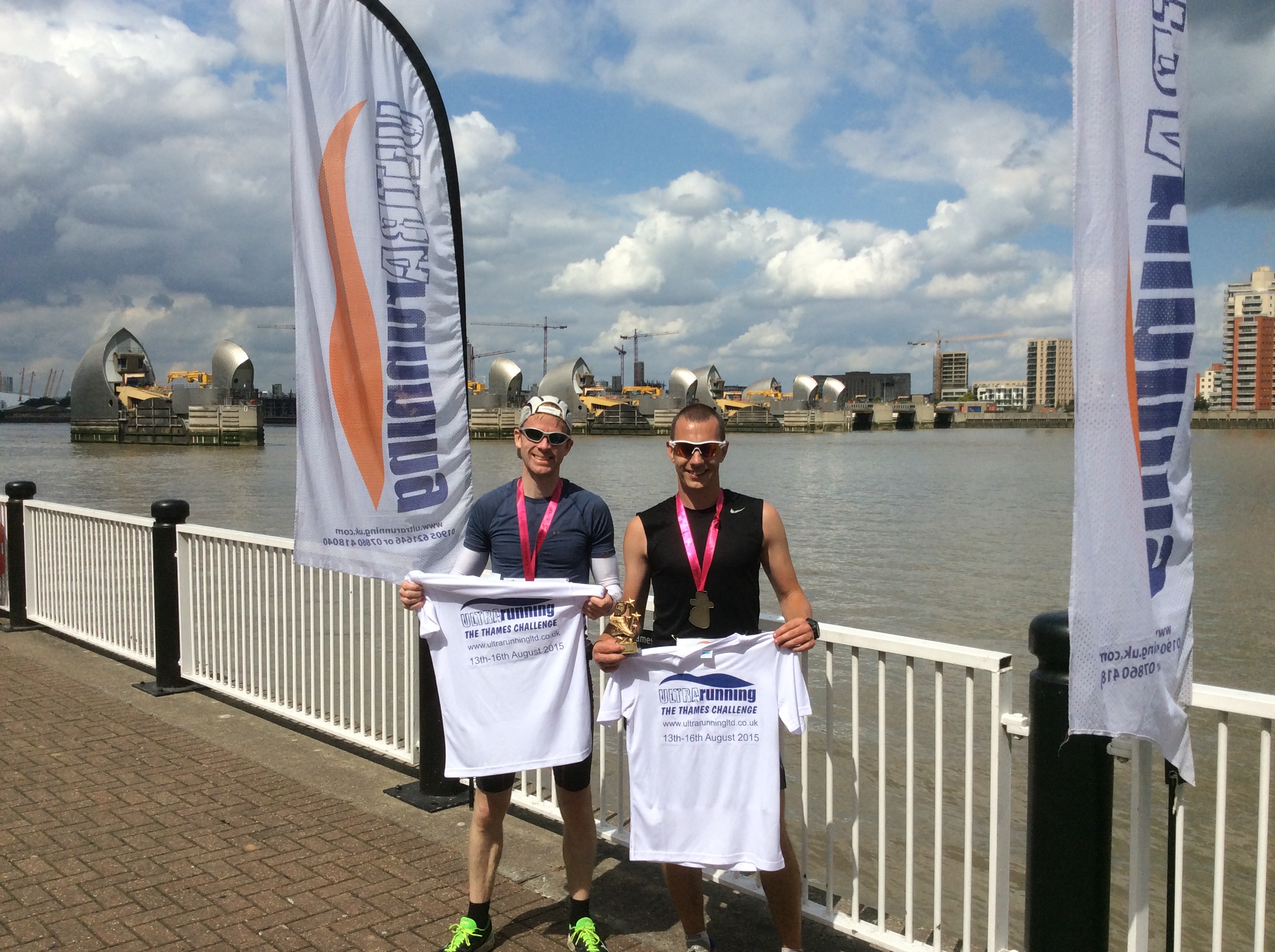 Then came the problems. The tourists and traffic were quite fun to negotiate, but the race route wasn’t as got lost a few times trying to find the Thames path and match up the Garmin route on my watch with the maps. After back tracking a few times we started to lose the love for racing and decided to nip into a shop to top up on food and liquid (something I’ve not done in a race before). We did however enjoy our surroundings and the company so decided to stay together to the finish despite the fact I was holding Paul up when I body stiffened in the final miles. We still finished in joint first. I was very pleased to have held the pace for the majority of the race and complete the distance (in a crumpled heap), as I expected and even planned to pull out at one of the check points.